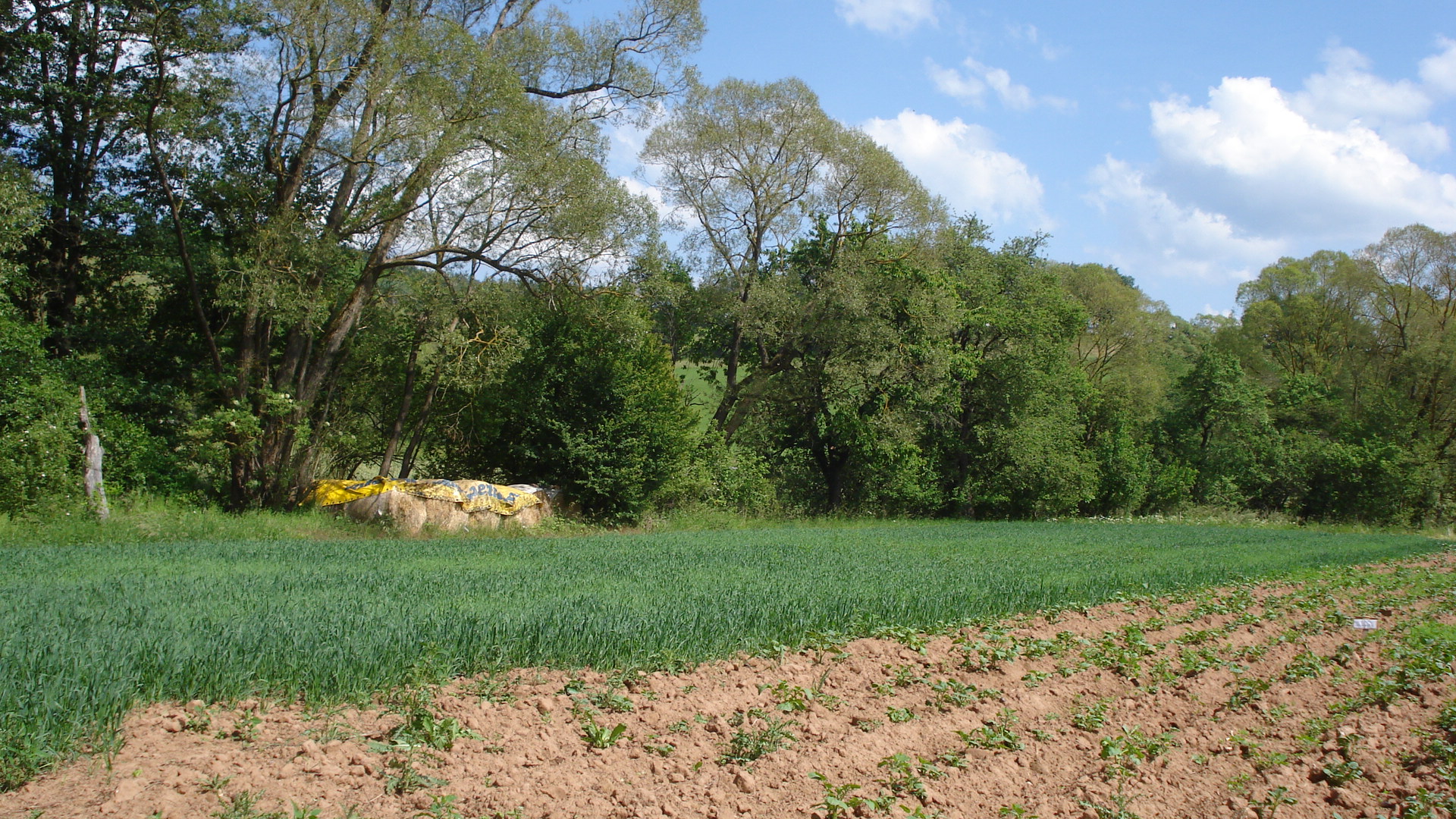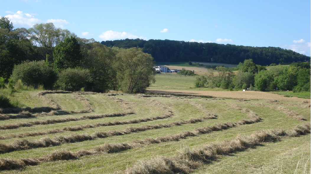 Zum Hof gehören ca. 1,5 ha Wald, 5 ha Wiese und 1,7 ha Ackerland. Der Wald ist zum Teil mit den Wiesen verbunden. Der Hauptacker liegt am Ortseingang und direkt am Bach.